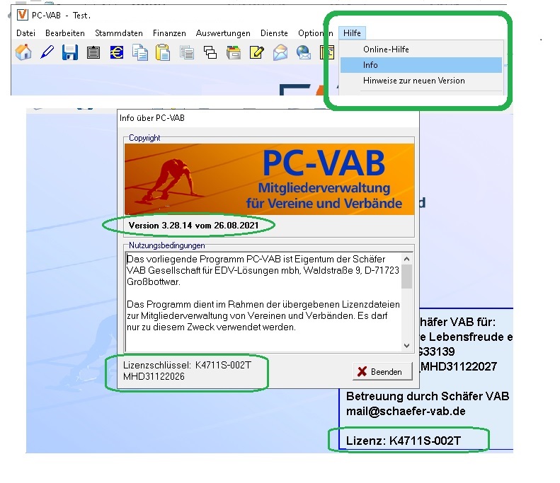 Prüfen Sie doch einfach über die PC-VAB Menüleiste „Hilfe“ - „Info“ welche Version Sie verwenden (mindestens 3.28.14 wäre sinnvoll) und ob das „MHD“-Datum im unteren Bereich der Maske länger läuft wie 31.12.2025.