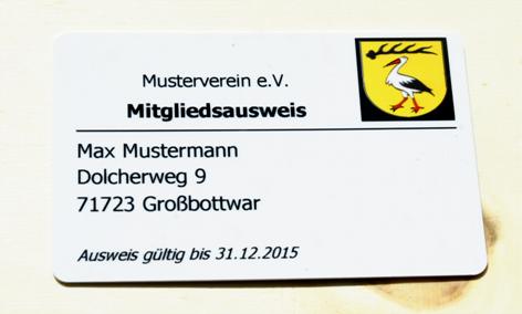 Wir bearbeiten gerade diesen Abschnitt des Internet-Auftritts und werden in Kürze hier kostengünstige Mitgliedsausweise aus Plastik (EC-Format, abriebfest) anbieten können. Der große Vorteil bei uns: Nach einer Erstausstattung können auch kleine Mengen von Ausweisen (z.B. für neue Mitglieder) zum kostengünstigen Einzelpreis + Versandkosten nachbestellt werden. Bei Interesse rufen Sie uns einfach an oder senden ein E-Mail. Hier der Verweis zur Kontaktaufnahme im Impressum |